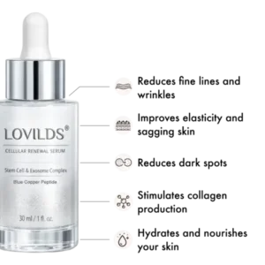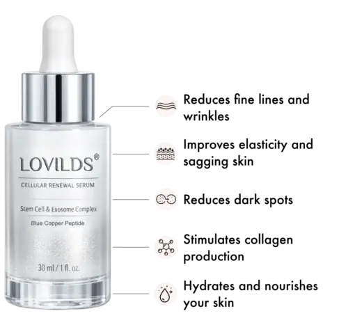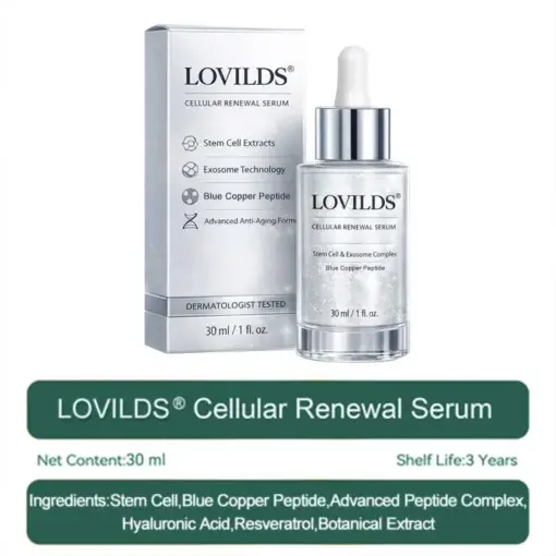 ย Powered by a stem cellโinspired anti-aging formulaย featuring ย Blue Copper Peptide, advanced peptides, hyaluronic acid, resveratrol, and botanical extracts, designed to support visible wrinkle reduction, skin renewal, and a healthier, more youthful-looking complexion.