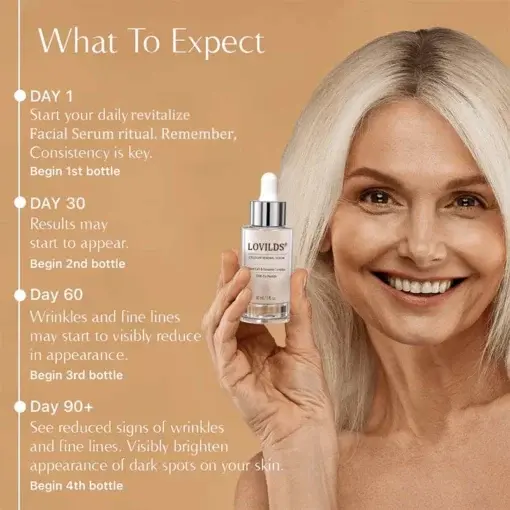 โAfter 5 weeks of using ๐๐๐๐๐๐๐ยฎ๏ธ Revitalizing Anti-Wrinkle Serum, The lines, under-eye wrinkles, dark spots, without question โ were visibly reduced right before my eyes! I was overjoyed by the results, and literally felt 15 years younger again. It was like watching all my wrinkles and fine lines vanish right off! I will keep using it, until all my wrinkles and fine lines are gone. I looked in the mirror and saw that my face looked a bit rosy โ the result of circulating facial blood flow rushing to the surface of my skin to renew my face.