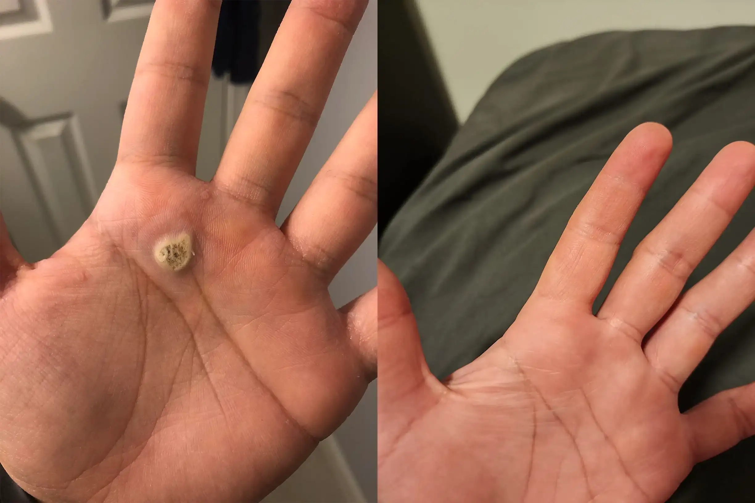 Warts are caused by viral infections of the skin. The most common warts usually appear on the fingers, hands, and feet. Warts may also appear on other parts of the body, including the face, knees, and elbows. Warts usually have a rough, bumpy surface and may be round or oval in shape. They may be painful or uncomfortable, especially if they are on a weight-bearing part of the body.