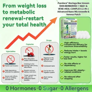 We are a top-tier endocrinology research team., and many of us have personally experienced obesity and its associated complications. Over the years, we have also evaluated commonly available weight-loss interventions on the market, including injectable therapies, capsules, and Oral weight-loss pills. However, their outcomes were often limited, and many were accompanied by tolerability concerns. These experiences motivated us to develop a safer, more natural, and more effective approach to metabolic health and weight management. After more than 12 years of research, our team initiated self-testing of this program, successfully overcoming the limitations of traditional single-pathway interventions that frequently cause gastrointestinal side effects. By adopting a dual-pathway strategy—supporting appetite regulation and fat metabolism while also addressing post-weight-loss skin firmness—we observed significant improvements in body weight and metabolic health, without rebound weight gain or adverse reactions. Subsequently, we conducted large-scale studies and clinical trials involving more than 5,000 participants, further validating the performance of 𝐏𝐮𝐫𝐞𝐥𝐨𝐫𝐚® 𝐁𝐞𝐞 𝐕𝐞𝐧𝐨 𝐕𝐄𝐍𝐄-𝐇𝐄𝐀𝐋 𝐱 𝐍𝐀𝐃+ 𝐁𝐄𝐑𝐁𝐄𝐑𝐈𝐍𝐄 𝟏𝟐-𝐢𝐧-𝟏 𝐀𝐝𝐯𝐚𝐧𝐜𝐞𝐝 𝐍𝐚𝐧𝐨 𝐌𝐢𝐜𝐫𝐨𝐧𝐞𝐞𝐝𝐥𝐞 𝐏𝐚𝐭𝐜𝐡 in metabolic regulation, appetite control, and overall health outcomes. These benefits were particularly pronounced among overweight or obese adults over the age of 40. Supported by contemporary medical research, 𝐏𝐮𝐫𝐞𝐥𝐨𝐫𝐚® 𝐁𝐞𝐞 𝐕𝐞𝐧𝐨 𝐕𝐄𝐍𝐄-𝐇𝐄𝐀𝐋 𝐱 𝐍𝐀𝐃+ 𝐁𝐄𝐑𝐁𝐄𝐑𝐈𝐍𝐄 𝟏𝟐-𝐢𝐧-𝟏 𝐀𝐝𝐯𝐚𝐧𝐜𝐞𝐝 𝐍𝐚𝐧𝐨 𝐌𝐢𝐜𝐫𝐨𝐧𝐞𝐞𝐝𝐥𝐞 𝐏𝐚𝐭𝐜𝐡 has undergone rigorous FDA regulatory review and evaluation, with its safety, effectiveness, and compliance formally recognized. This formulation represents a scientific advancement beyond conventional weight-loss products that are often associated with significant gastrointestinal burden, offering a natural, safe, and effective option for individuals seeking comprehensive metabolic support and sustainable long-term weight management.”
