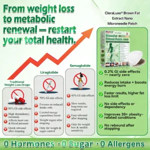 This is where targeted brown fat activation can make a difference, breaking this vicious cycle by awakening your bodyโs hidden fat-burning engine, suppressing appetite, stabilizing blood sugar fluctuations, and accelerating natural fat utilization. The result: more lasting fat loss effects with visible brown color-change proof as activated brown fat metabolites are extracted right on the patch, more stable energy levels, better sleep quality, and significant improvements in overall health markers.
