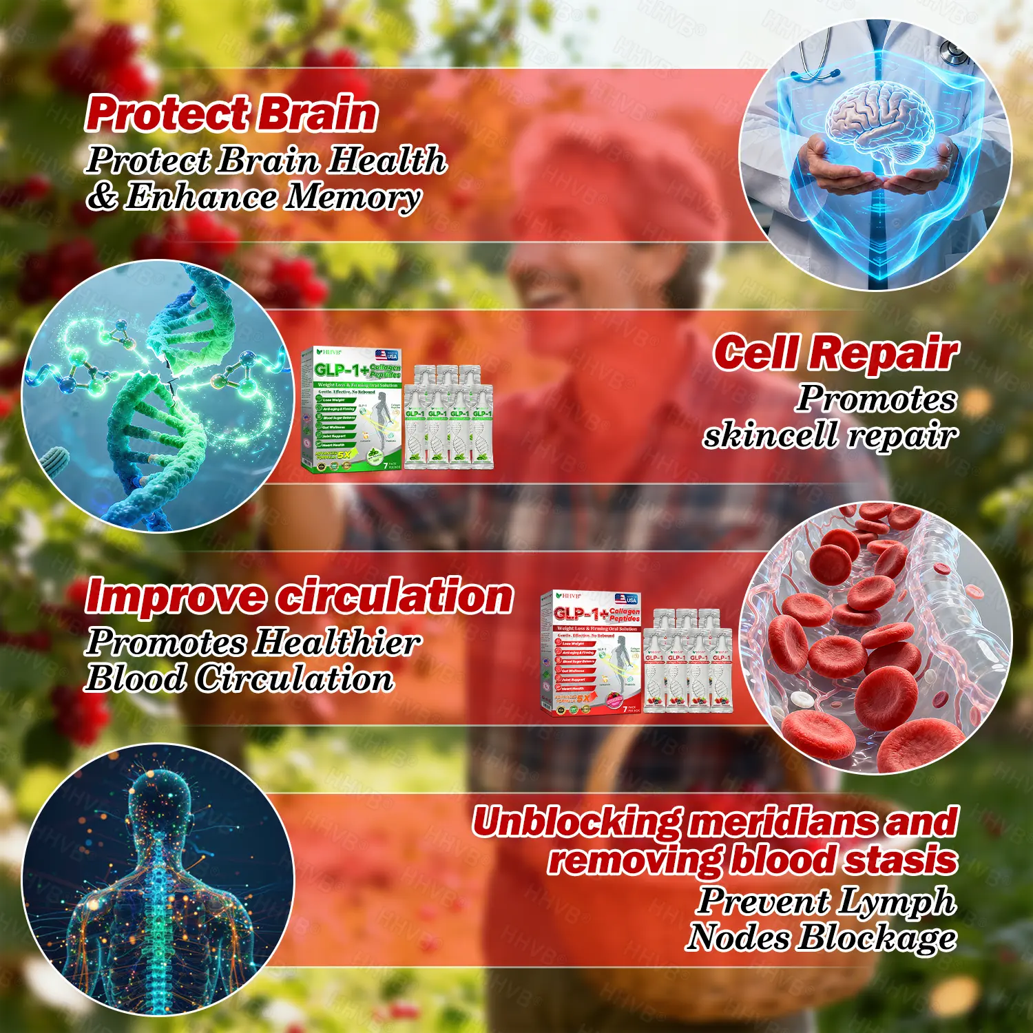“As an international team of endocrinology and anti-aging specialists focused on GLP-1โbased metabolic weight management, our clinical research involving thousands of participants revealed a critical finding:While many individuals achieve significant weight reduction, they often experience skin sagging, volume loss, and premature aging. This occurs because, after fat reduction, the dermal collagen framework fails to rebuild quickly enough to maintain skin support and elasticity.Based on these findings, we developed the innovative HHVBยฎGLP-1 + Collagen Peptides Weight Loss & Firming Oral Solution.