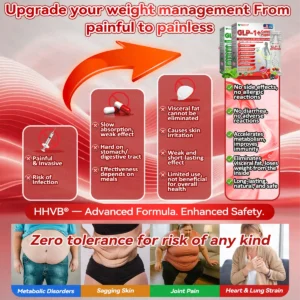 In clinical studies, users of HHVBยฎGLP-1+Collagen Peptides Weight Loss&Firming Oral Solutionย achieved impressive results, with some losing as much asย 6โ8 lbs of stubborn fat in just one week.With justย one dose every day, it effectively targets the burning ofย visceral and abdominal fat, helping to sculpt a leaner body โย no intense workouts required.