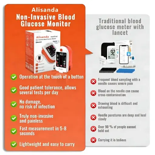 Say goodbye to finger pricks! With Alisanda™, you can easily monitor your blood sugar levels in a safe, comfortable, and pain-free way.