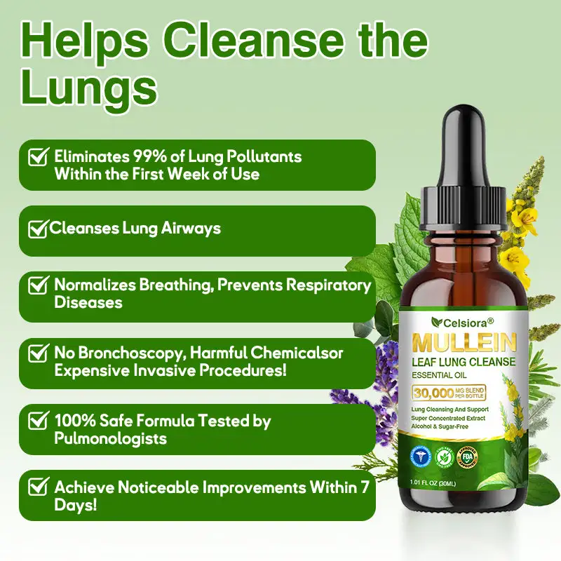 Thatโs when I found Celsioraยฎ Organic Mullein Leaf Lung Cleanse Essential Oil. I started applying a few drops to my chest and upper back every day, gently massaging it in and breathing in the herbal aroma. It felt soothing right away, and within two weeks I noticed a real differenceโthe tightness in my chest eased, I wasnโt gasping for air as much, and mornings no longer felt like a nightmare.