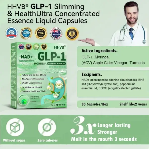 โI suffer from obesity and diabetes and have been receiving GLP-1 treatment in the hospital. Why, you may ask, did I suddenly switch to HHVBยฎ GLP-1 Slimming Health Ultra Concentrated Weight Loss Beads? The truth is that GLP-1, as a natural hormone, is really a great treatment to help regulate blood sugar. After the injection, my appetite dropped significantly, I lost weight quickly, and my blood sugar stabilized. But as we all know, itโs really hard to break old habits. When I needed injections every day, I always found all kinds of excuses to put them off, resulting in intermittent treatment. Sometimes it was because the cost was too high, sometimes it was because I was hungry, sometimes it was because of scheduling conflicts, or even just because it was raining outside and I didnโt want to go out. And now, GLP-1 and NAD+ Highly Concentrated Weight Loss Beads are a blessing for people like me who are prone to laziness. I can easily use it at home and the results are long-lasting and will continue to suppress my appetite. Whatโs more, itโs so affordable that almost anyone can use it for weight loss and sugar control! You only need to take 3 capsules a day. Itโs not one of those hard-to-swallow pills, you just put it in your mouth and it automatically pops open in 3 seconds, releasing the natural ingredients from your mouth all the way to your stomach โ the whole experience is exceptional!โ