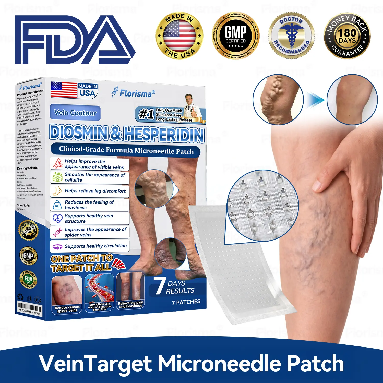 Featuring breakthrough dissolvable microneedle technology, it bypasses the skin barrier to deliver high-concentration botanical actives directly to weakened vein areas, addressing fragile vein walls and poor circulation at the root cause.
