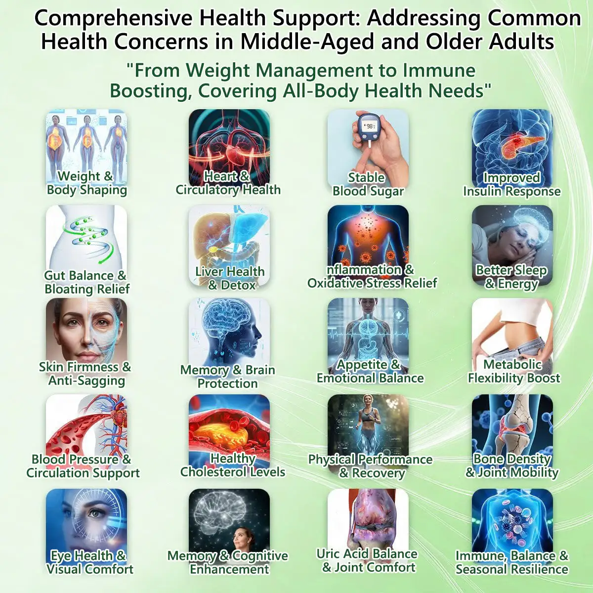 Comprehensive Wellness Support: Beyond weight loss, our formula supports heart health, blood sugar balance, and joint comfort while clearing brain fog and boosting low energy.