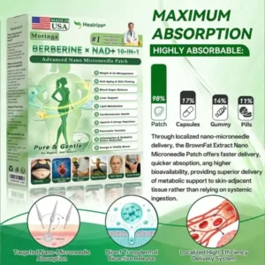 ๐‡๐ž๐š๐ฅ๐ซ๐ข๐ณ๐žยฎ ๐‘ด๐’๐’“๐’Š๐’๐’ˆ๐—ฎ ยท ๐—•๐—ฒ๐—ฟ๐—ฏ๐—ฒ๐—ฟ๐™ž๐™ฃ๐™š ร— ๐™‰๐˜ผ๐ƒ+ ๐Ÿ๐ŸŽ-๐ข๐ง-๐Ÿ ๐—”๐—ฑ๐˜ƒ๐—ฎ๐—ป๐—ฐ๐™š๐™™ ๐™‰๐™–๐™ฃ๐™ค ๐™ˆ๐™ž๐™˜๐™ง๐™ค๐™ฃ๐™š๐™š๐๐ฅ๐ž ๐๐š๐ญ๐™˜๐™ย was developed through more thanย 20 years of research by a multidisciplinary team of over 30 experts. Each patch incorporates an ultra-fine microneedle architecture measuring approximatelyย one-seventh the thickness of a human hair, designed to ensure a smooth and virtually painless application. The formulation containsย highly concentrated natural bioactive compounds, up to 20-fold higher than conventional market levels, includingย Moringa and Berberine, which act synergistically to support healthy glycemic responses, appetite regulation, and lipid metabolism, thereby promotingย gradual and sustainable weight management.