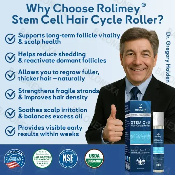 โI was on Finasteride for two years. Sure, my hair improved a little, but it stayed thin and patchy, and the side effects were unbearable โ low mood, no energy, even my marriage was affected. After I stopped, the shedding came back worse than ever. Then I came across the Rolimeyยฎ STEM Cell Roller ad. Honestly, I thought it was just hype, but I decided to give it a try. To my surprise, in just 4 weeks, baby hairs began sprouting along my hairline. My confidence shot up, and my wife even said I look 10 years younger. The best part is that there are absolutely no side effects. This product has truly changed my life, and I canโt wait to see even more results in the months ahead.โย โย James, Age 47, Austin