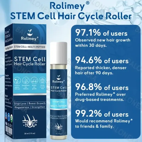 Customer studies show Rolimeyยฎ STEM Cell Hair Cycle Roller delivers powerful hair-restoring effects, especially for those experiencing genetic thinning, hormonal imbalance, stress-related loss, or age-related shedding. Users reported dramatic improvements in hair density, strength, and overall scalp condition โ all without drugs, side effects, or invasive treatments.