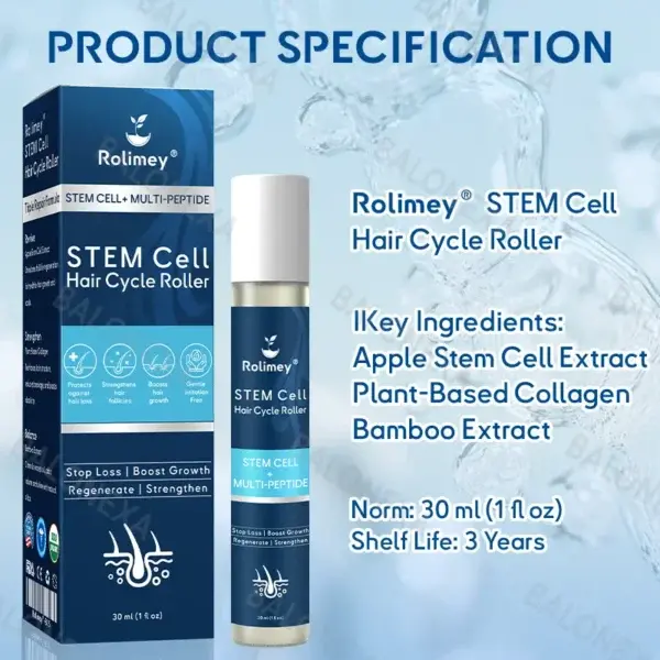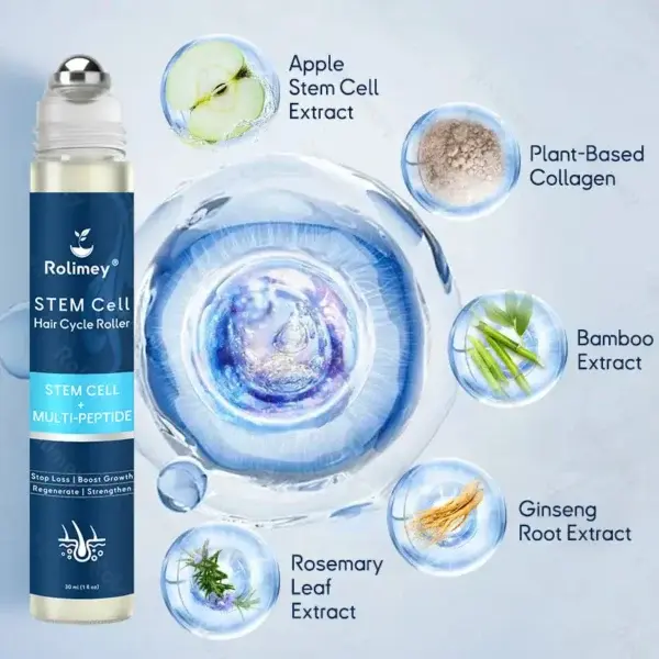 Not all hair regrowth formulas are created equal. Rolimeyยฎ STEM Cell Hair Cycle Roller uses a pharmaceutical-grade complex of Apple Stem Cell Extract, NASA-inspired Multi-Peptides, and botanicals such as Bamboo, Ginseng, and Rosemary โ concentrated and purified for maximum follicle activation.