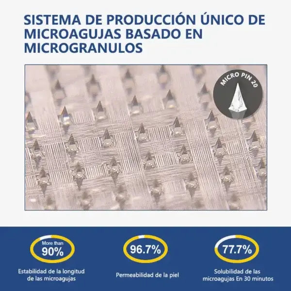 Our nano microneedle patch is dermatologically tested and precisely engineered to control the transdermal release of active ingredients. While the skin naturally acts as a strong barrier. this advanced nano microneedle system is specifically designed to penetrate that barrier safely and effectively. Each microneedle is just 0.27 mm in lengthโabout one-seventh the thickness of a human hairโand made from dissolvable bioactive materials. ensuring a smooth. virtually painless application while delivering ingredients directly into the skin.