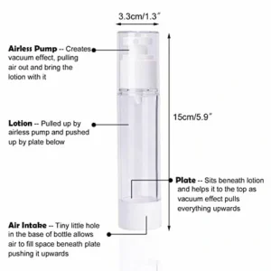 • Airless Vacuum Dispensing— Airless pump technology ensures you’ll keep your products fresh and free from oxidation by preventing them from excessive exposure to air, thus increase product shelf life up to 15% more & NO Odour.