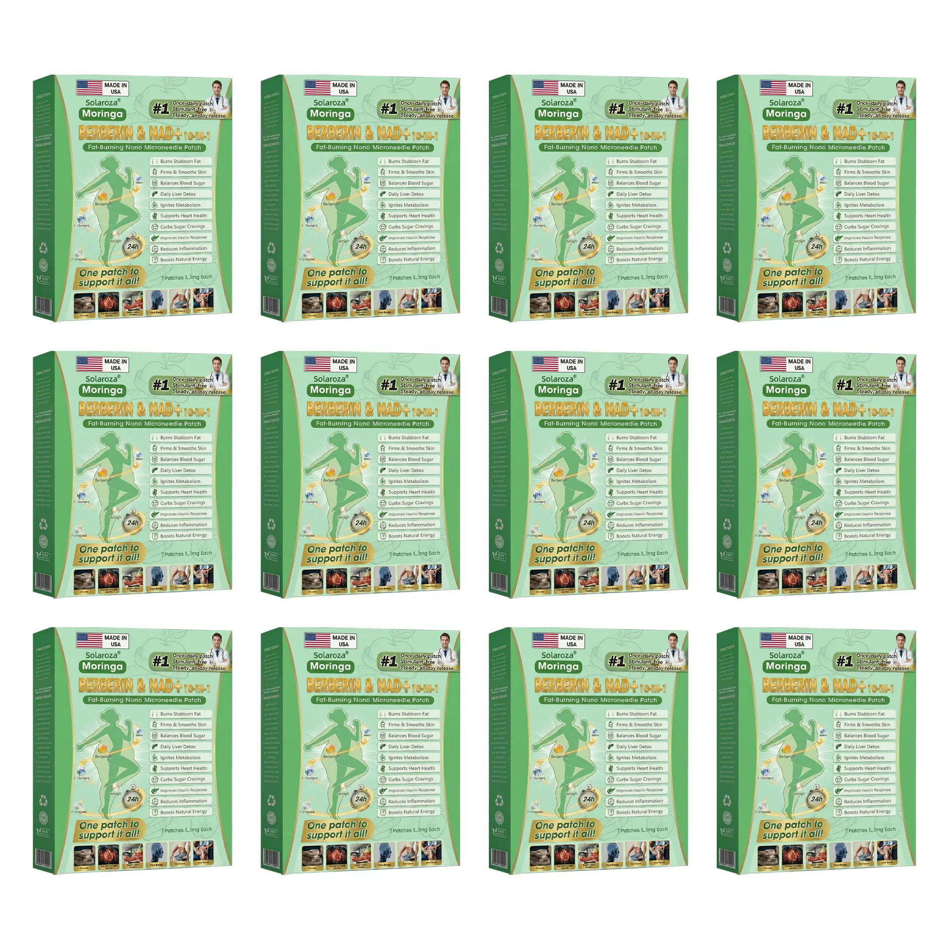 CLINICALLY TESTED BY ENDOCRINOLOGY EXPERTSThe Solaroza® Moringa & Berberine 10-IN-1 Advanced Nano Microneedle Patch features a new natural formula with upgraded multi-pathway metabolic support, designed to help regulate appetite, improve metabolic efficiency, and support sustainable weight management.