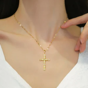 The gold cross necklace not only represents faith and hope but also serves as a connection to the universe, conveying your desires and goals. Every time you touch the cross, feeling its warmth and radiance, it becomes an opportunity to connect with good fortune.
