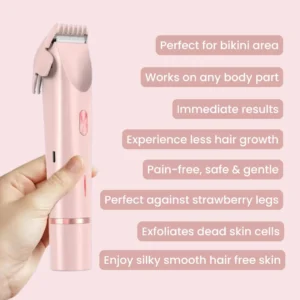 This 2-in-1 women’s body shaver features ultra-soft blades that glide over your skin, providing a smooth, irritation-free shave.