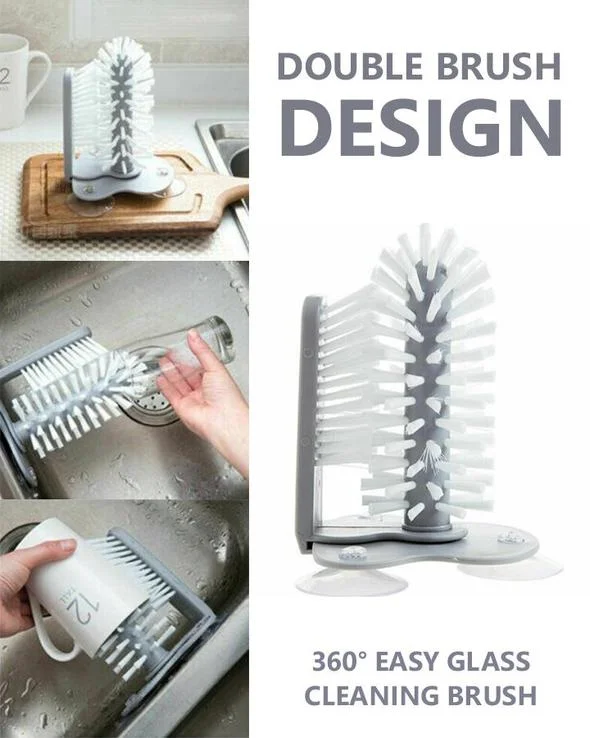 The cup brush with double sided bristle brush, 360 degree no dead angle cleaning, you can slide glassware between the two sets of bristles, makes cleaning your glassware a breeze.