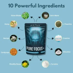 Achieve sharper focus, enhanced memory, and lasting energy with AIKYAM Pure Focus+, the natural nootropic for peak mental performance.