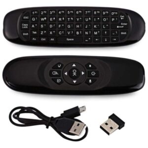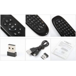 Package Includes: 1 x Wireless Air Mouse, 1 x Remote Control, 1 x Receiver, 1 x USB Cable