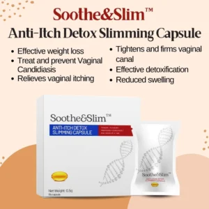 Soothe&Slim™ Anti-Itch Detox Slimming Capsule, developed by Soothe&Slim TM, creatively reconstructs collagen and combines various plant extracts to effectively repair the uterus and vaginal mucosa, promote the system’s self-cleaning, and moisturizing capacity, stimulate the regeneration of vaginal tissue, and finally restore vaginal health as well as firmness and suppleness within 4 weeks.