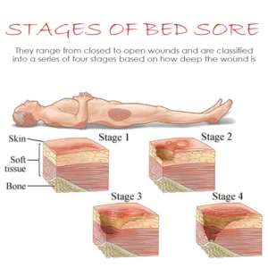 Damage to an area of the skin caused by constant pressure on the area for a long time. This pressure can lessen blood flow to the affected area, which may lead to tissue damage and tissue death. Bedsores are caused by pressure against the skin that limits blood flow to the skin. Limited movement can make skin vulnerable to damage and lead to the development of bedsores.
