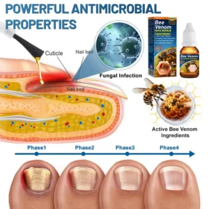 This specialized formula includes antimicrobial compounds that combat both fungal and bacterial infections, while also fortifying nails to prevent breakage. The anti-inflammatory properties of bee venom reduce inflammation in the nail bed, ensuring long-term protection and infection prevention.