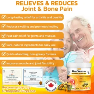 • Contains melittin, a powerful anti-inflammatory and pain-relieving protein, along with essential enzymes, amino acids, and vitamins for tissue repair and mobility improvement.