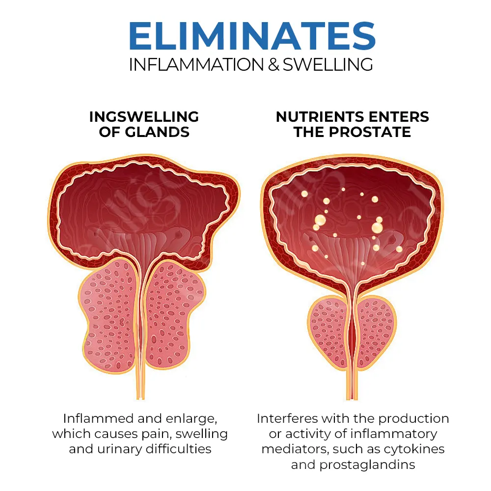 ✅ Reduced Inflammation: Aids in reducing inflammation in and around the prostate, providing relief from symptoms linked to prostatitis or benign prostatic hyperplasia (BPH).