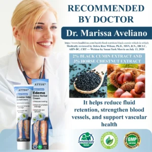 Endorsed by Dr. Marissa Aveliano, a specialist at the American Vein & Lymphatic Society, ATTDX® Black Cumin Edema Detox Herbal Cream has earned recognition for its ability to reduce swelling, improve circulation, and relieve discomfort.