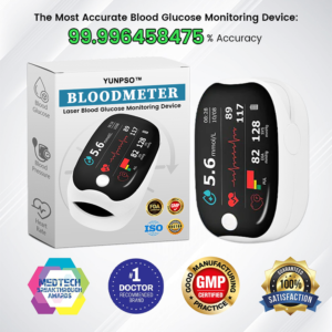 The YUNPSO™ Blood Glucose Monitoring Device offers 99.9% accuracy, ensuring reliable and precise results every time. It uses cutting-edge technology, including advanced algorithms and light wavelengths, to provide accurate measurements for blood sugar, heart rate, and oxygen levels.