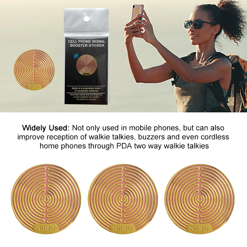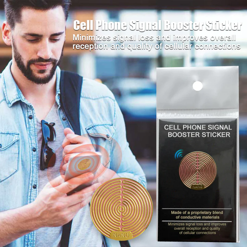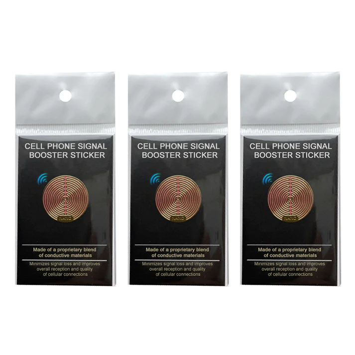 The sticker enhances the existing signal by using a conductive material that acts as a passive directional coupler, channeling the signal more effectively to your phone’s antenna.