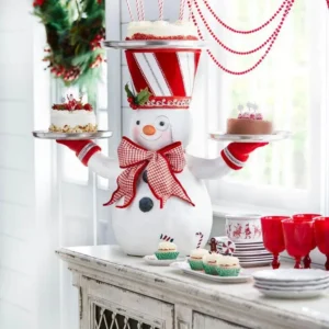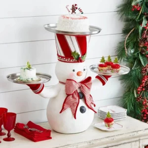 • 🎄🎅【CUTE CHRISTMAS PARTY DECOR】:This Snowman Treats Holder props three plates for serving up all kinds of goodies. As functional to use as it is fun to look at, three trays – hold beverages or devilishly tasty finger foods. This is a Christmas joyful choice to decorate the cupcake dessert for your Christmas dinner, party and Event! Perfect place for all those candy canes you randomly accumulate during the holidays.