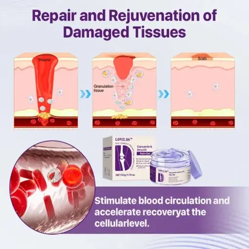 The turmeric in the gel contains curcumin, a potent anti-inflammatory compound that helps reduce swelling, pain, and redness in affected joints. Emu oil, known for its deep penetration, works with turmeric to soothe and calm inflammation, providing fast and effective pain relief.