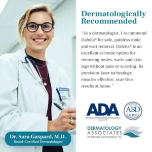 DAFEILA® is recognized by leading U.S. dermatologists as a breakthrough in at-home skin treatment. Supported by clinical research and endorsed by top dermatology associations, DAFEILA® has been shown to significantly reduce the appearance of moles, warts, dark spots, and other skin blemishes with regular use. Experts regard it as a safe, non-invasive alternative to costly in-office procedures—bringing professional-grade skincare within reach for everyone.
