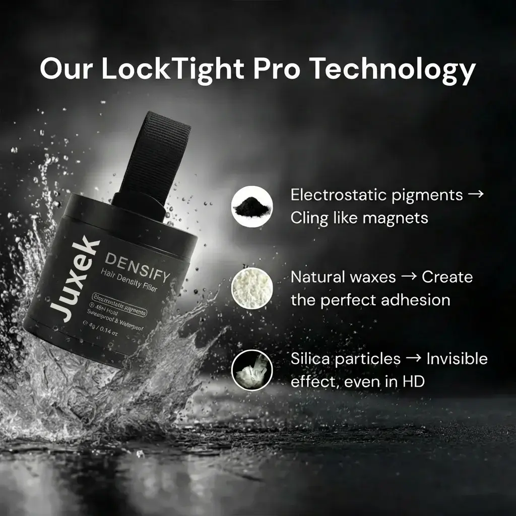 Why spray and loose fibers fail… and how Juxek™ Densify revolutionizes hair concealment with LockTight Pro Technology.