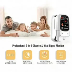 Real-Time Monitoring: Get instant readings for blood glucose, blood pressure, heart rate, and blood oxygen.