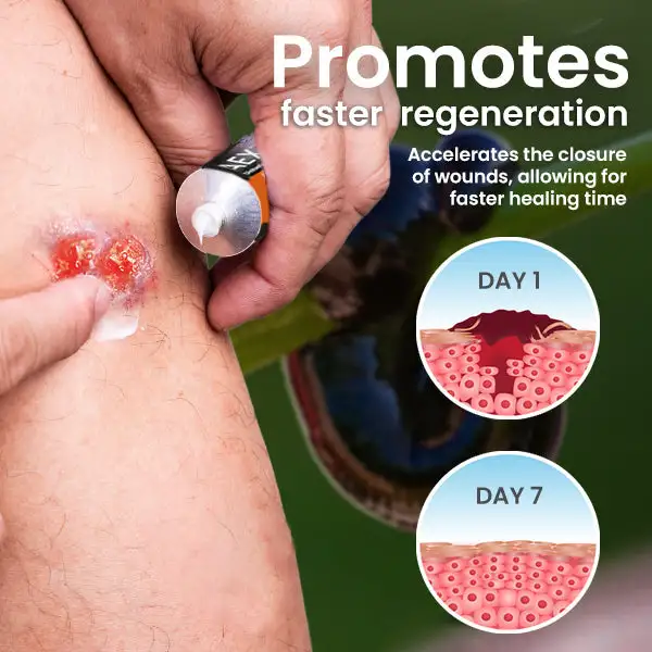 • Minimized Scarring: By enhancing tissue regeneration and repair, the cream reduces the likelihood of scar formation, leading to smoother, more resilient skin.
