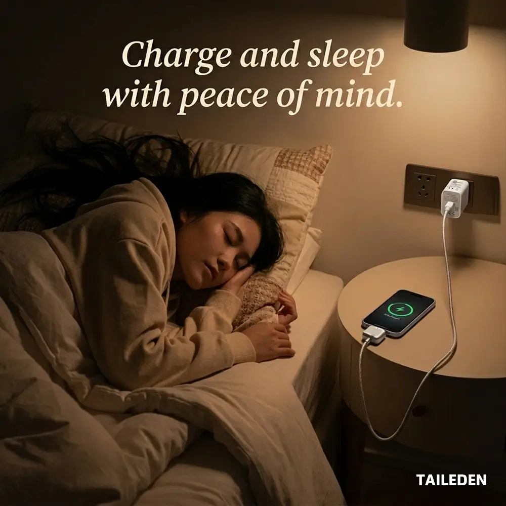 With the TAILENDEN Smart Charging Adapter, you can sleep soundly. It automatically deploys soft silicone to physically separate your phone once it reaches 100%.