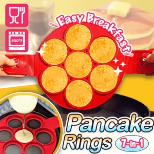 Made of high-quality, food-grade thickened silicone rubber material with an exceptional durability, flexibility, and heat resistance capabilities. It is completely safe to come into direct contact with any food products without posing harm to your overall health. Furthermore, this 7-ring pancake mold can hold out against years of daily usage and washes with not a single damage or toxic leaching.
