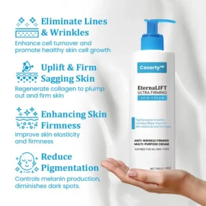 Ceoerty™ EternaLIFT Ultra Firming Skin Cream offers an advanced solution for those who want visibly firmer, younger-looking skin. This innovative formula combines powerful firming agents and moisturizing ingredients to combat sagging skin, fine lines, and wrinkles, making it ideal for all skin types. It provides deep hydration while boosting elasticity, leaving your skin feeling smoother and more youthful.