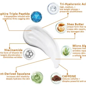 Embrace the transformational impact of our professionally validated skincare product, which incorporates cream-infused ingredients to target and repair crepey, sagging skin. Experience visible benefits in as few as three days.