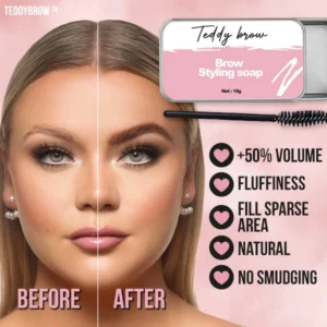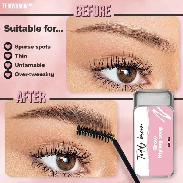 Achieve fuller-looking, feathery brows in just an easy glide of Teddybrow™ Fluffy Styling Brow Soap!