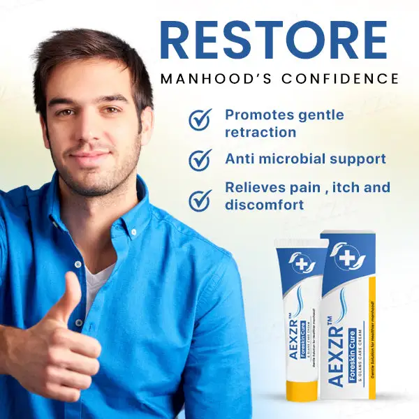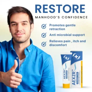 “As a healthcare professional, I highly recommend AEXZR™ Foreskin Cure & Glans Care Cream for men experiencing foreskin issues or glans sensitivity. This product offers a safe, effective, and non-invasive solution for gradual foreskin reduction, while also providing essential protection for the sensitive glans. The scientifically backed formula helps soothe irritation, improve skin elasticity, and prevent bacterial buildup, making it ideal for maintaining both hygiene and comfort. With regular use, this cream supports overall skin health, reduces the risk of infections, and enhances mobility, offering lasting relief and care.”