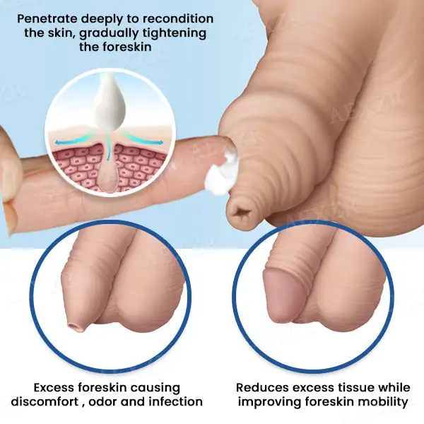 AEXZR™ Foreskin Cure & Glans Care Cream works through a scientifically formulated combination of advanced skin-regenerating agents that target the key issues associated with foreskin and glans health. The cream utilizes specialized active compounds that gently stimulate the skin, promoting gradual foreskin reduction over time by enhancing skin elasticity and firmness.