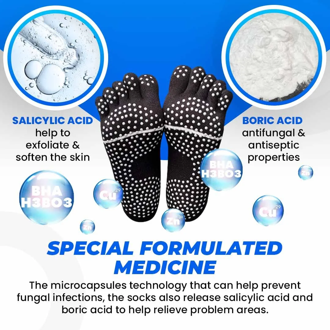 • Microcapsule Technology: These socks are infused with microcapsules that contain natural anti-fungal and anti-bacterial agents. These microcapsules release their contents gradually, providing long-lasting protection against foot fungus and bacteria.