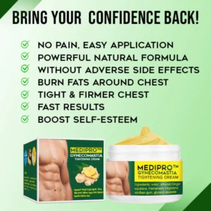 MediPRO™ Gynecomastia Tightening Cream is 100% natural and does not contain any chemically manufactured ingredients. That’s why so many men are now using it as a way to get rid of gynecomastia. The ingredients in this cream include: