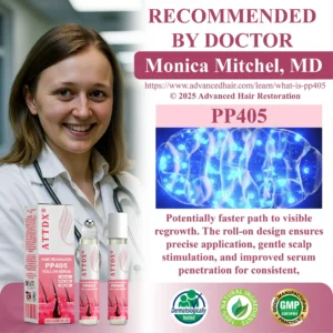 ATTDX® Hair Reawaken Roll-On Serum delivers the breakthrough PP405 compound directly to your scalp to revive dormant follicles, restore density, and bring back fuller, healthier-looking hair with renewed confidence.