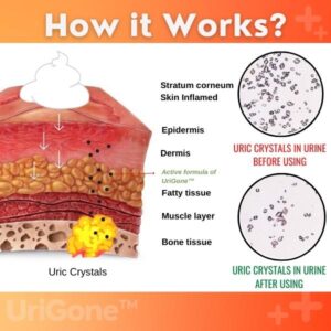 UriGone™ Healing Ointment for Gout contains an anti-inflammatory formula that causes vasodilation, which spreads up through the affected area and improves overall circulation. These then reach the joints, where they soften and dissolve the uric crystals.