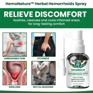 After three years of effort and experimenting with thousands of natural ingredients, HemoNature™ Herbal Hemorrhoids Spray was successfully developed in 2022. It’s a natural blend of ingredients aimed at helping to alleviate symptoms and improve the health of the affected area. HemoNature™ can do all of these: